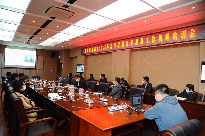 本网讯(宣传部 王彬)5月9日,kaiyun官网在综合楼第二会议室和第一教学楼1202报告厅组织收看了“全省普通高校2020年春季学期开学准备工作视频培训会”。培训会由吉林省教育厅体育卫生与艺术教育处处长胡仁友主持。学校领导马尚、孙杰光、赵惠敏、靳国庆、岳宏、刘鹤、于金欢以及疫情防控工作领导小组成员、各二级单位疫情防控领导小组负责人、全体辅导员等参加了视频培训会。