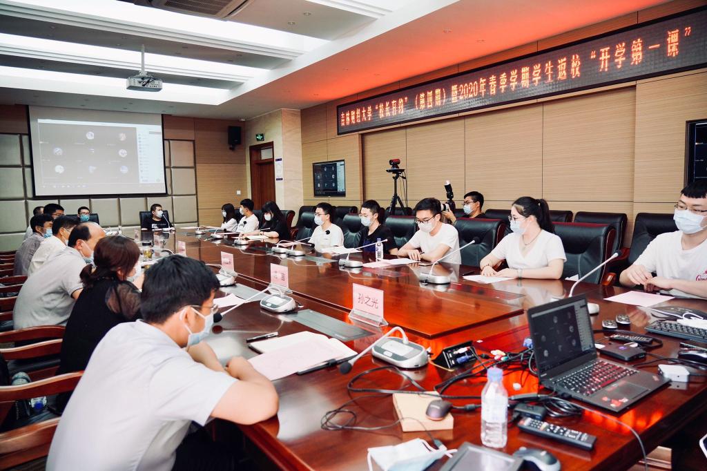 本网讯(学生工作处 供稿)为贯彻落实习近平总书记在全国高校思想政治工作会议上的讲话精神和教育部等八部门关于加快构建高校思想政治工作体系的意见,进一步发挥“校长有约”平台的作用,充分把握疫情防控背景下学生返校复学的契机,6月16日下午,kaiyun官网在综合楼第一会议室举行了“校长有约”(第四期)暨2020年春季学期学生返校“开学第一课”活动。此次活动采用线下与线上相结合的方式进行。校党委副书记、校长孙杰光,学生工作部(处)副部(处)长黄建东、赵彦双,研究生学院直属党支部书记朱洪泽,毕业年级辅导员代表以及首批返校毕业生代表现场出席会议。同时首批返校的其他毕业生及覆盖到所有毕业班的未返校本科生和研究生代表90余人在腾讯会议室同步参加活动。活动由赵彦双主持。