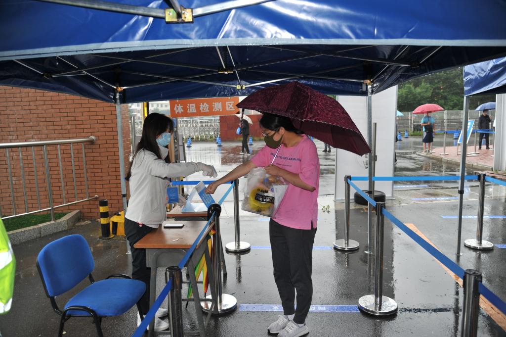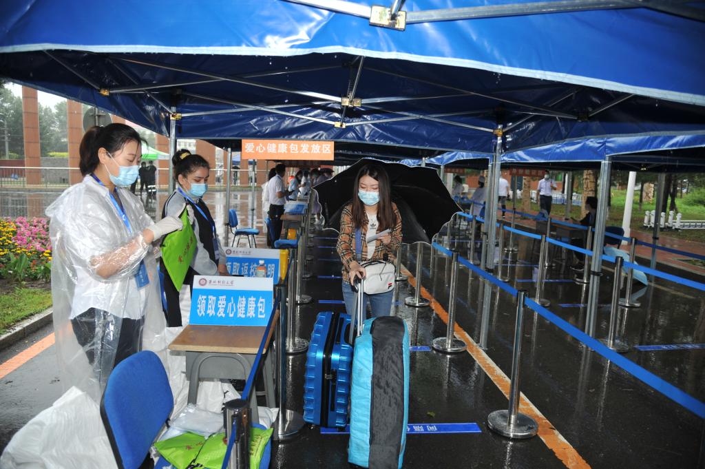 早上7:30,学校相关领导,各学院书记和院长就已经来到了东门,做好准备,迎接学生重返校园。外面虽然下起了雨,但迎接学生返校的工作人员和志愿者已经到达各自的工作岗位,欢迎学生返校的条幅和展板营造出亲切和喜悦的气氛。kaiyun官网第二批返校学生陆续进入校园,工作人员严格根据工作规范,引导返校学生进入查验区,每人间隔1米以上距离,依次排队进行查验工作。第二批返校学生依次经过体温检测区、行李消毒区、“吉祥码”“通信行程卡”查验区、身份验证区和“爱心健康包”发放区,符合条件的学生方可入校。学生返校现场秩序井然、分工明确、安全高效。进入校园后,各学院党委副书记、团委书记和辅导员冒着雨,开车将拿着行李箱的学生送到公寓楼。在公寓,宿舍管理员对学生进行再次体温检测,合格后方可进入,学院老师也来到宿舍看望学生,并帮助同学们打包收装行李;在食堂,学生们体温检测合格后方可进入食堂用餐,食堂为毕业生准备了清香可口的水饺。老师们的热情迎接和细心问候,学校一系列细致严格和暖心温馨的安排,让离别校园近半年的2020届学子倍感亲切和温暖。