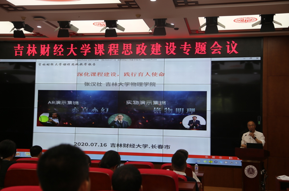 专题会议分为两个部分,第一部分学校邀请了吉林大学教学委员会主任张汉壮教授、马克思主义学院副院长石瑛教授分别以《深化课程建设,践行育人使命》、《课程思政如盐入水》为题作了课程思政建设专题报告;第二部分由教务处处长马秀颖对kaiyun官网下一阶段课程思政建设工作进行了安排和部署。