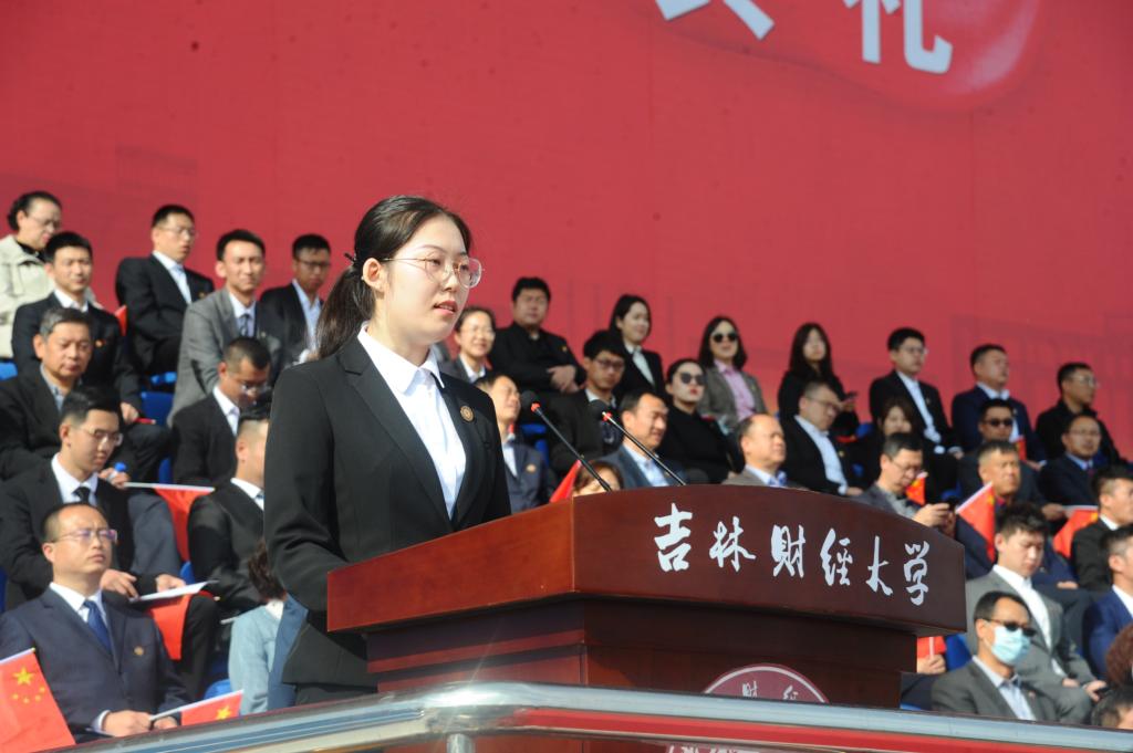 学校“十佳辅导员”、税务学院团委书记、2020级新生辅导员赵黎光代表全体辅导员发言,希望同学们肩负起中国力量、中国担当,以梦为马,不负韶华,激昂青春斗志,以青春之我、奋斗之我在吉财奏响崭新的青春华章。