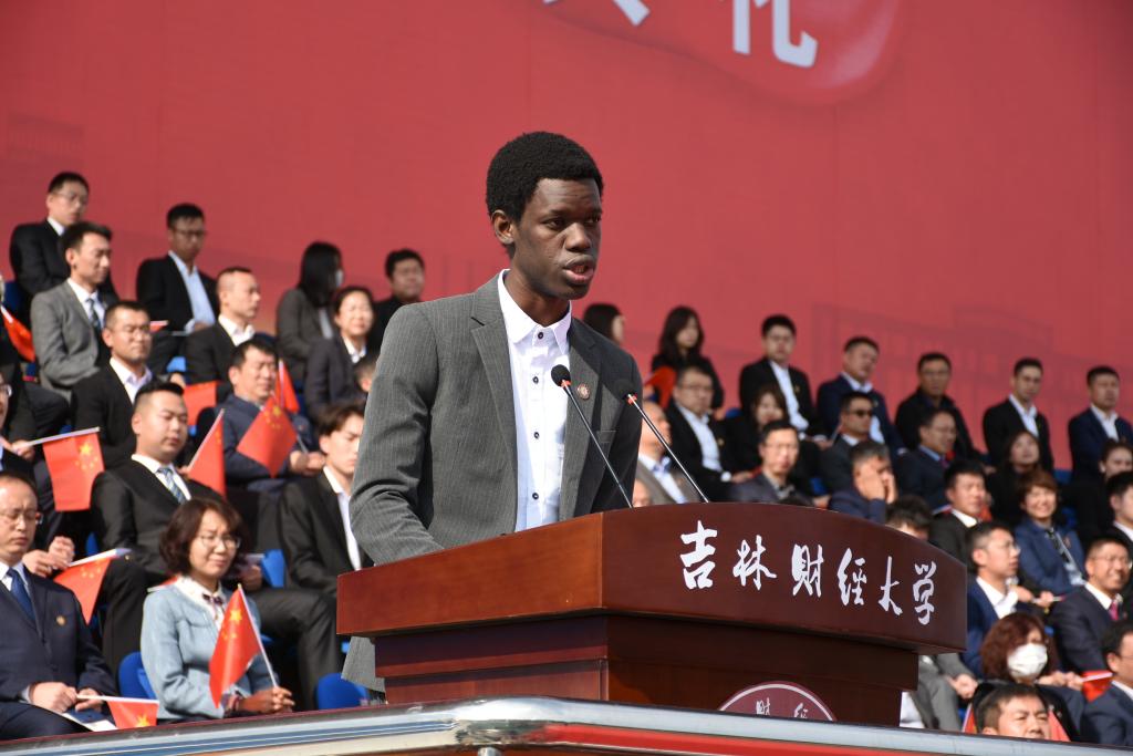 随后,国际经济贸易学院国际经济与贸易专业2086班王康博代表2020级本科生发言,表达了不负期望、努力学习、锐意进取,成为一名优秀吉财人的愿望和追求。金融学院金融学专业赵悦含代表2020级研究生发言,表示将坚定理想信念,不断完善自我,为我国经济建设和社会发展贡献力量。来自马里的迪亚罗代表全体留学生发言,对全体老师和同学对留学生的帮助和关怀表达感谢,并表示将珍惜在kaiyun体育网页登录入口的学习机会,学有所成。统计学院统计学专业1805班杨惠博代表全体在校生发言,寄语新生“路漫漫其修远兮,吾将上下而求索”。