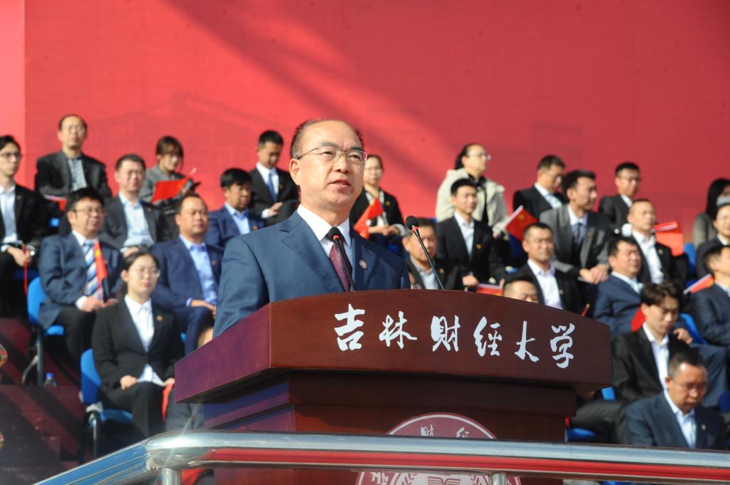 2020级新生如何开启崭新的大学生活,心里有梦,眼里有光,做好学业规划和人生规划;如何拥抱新时代,成为担当民族复兴大任的时代新人和德智体美劳全面发展的财经英才,孙杰光向大家提出了五点希望:一是拥抱新时代,就要有坚定的理想信念;二是拥抱新时代,就要有扎实的学识;三是拥抱新时代,就要有创新的能力;四是拥抱新时代,就要有坚强的体魄;五是拥抱新时代,就要有高尚的品格。最后,孙杰光寄语2020级新生,希望他们在吉财的美好时光里,充分汲取“尚学致用,择善鼎新”的精神力量,在“明德崇实”校训精神的滋养下,筑牢理想信念,夯实专业根基,练就过硬本领,保持身心健康,铸就高尚品格,拥抱新时代、奋斗新时代、荣耀新时代,早日成长为国家栋梁之才!