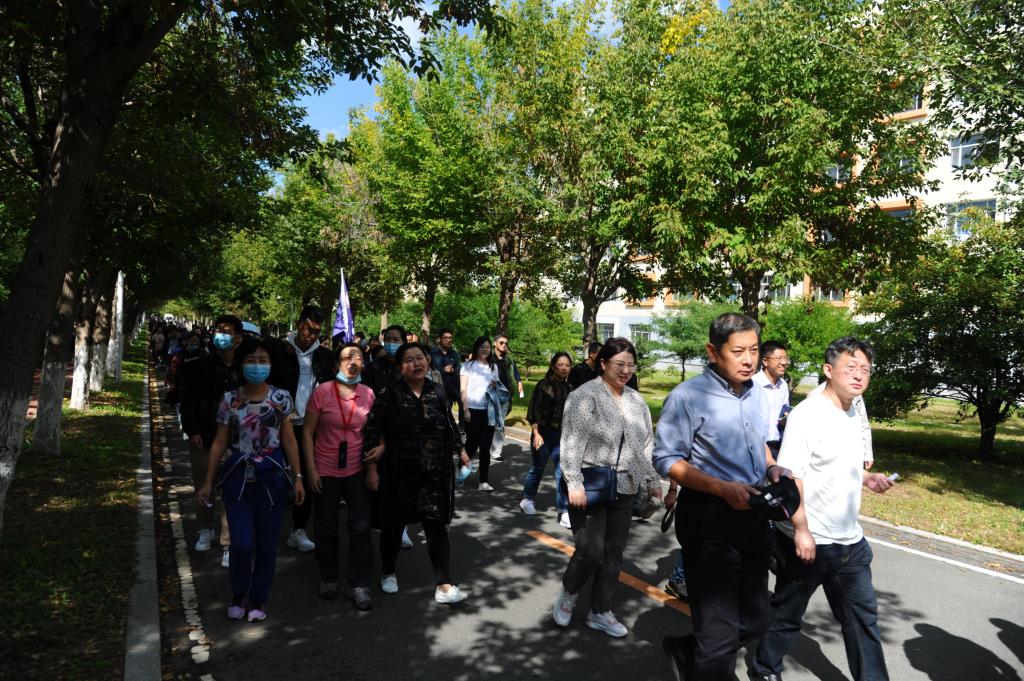 本网讯(学生记者 孙佳宁)9月16日中午,为庆祝第36个教师节,引导全体教职工树立科学的健身意识,强健体魄以防控疫情,立德树人为学生树立榜样,校工会、妇委会组织开展了以“立德树人奋进担当,教育脱贫托举希望”为主题的kaiyun体育网页登录入口2020年教师节校园徒步活动。学校领导马尚、孙杰光、邹永亮、岳宏、刘鹤、于金欢以及600多名教职工参加了活动。