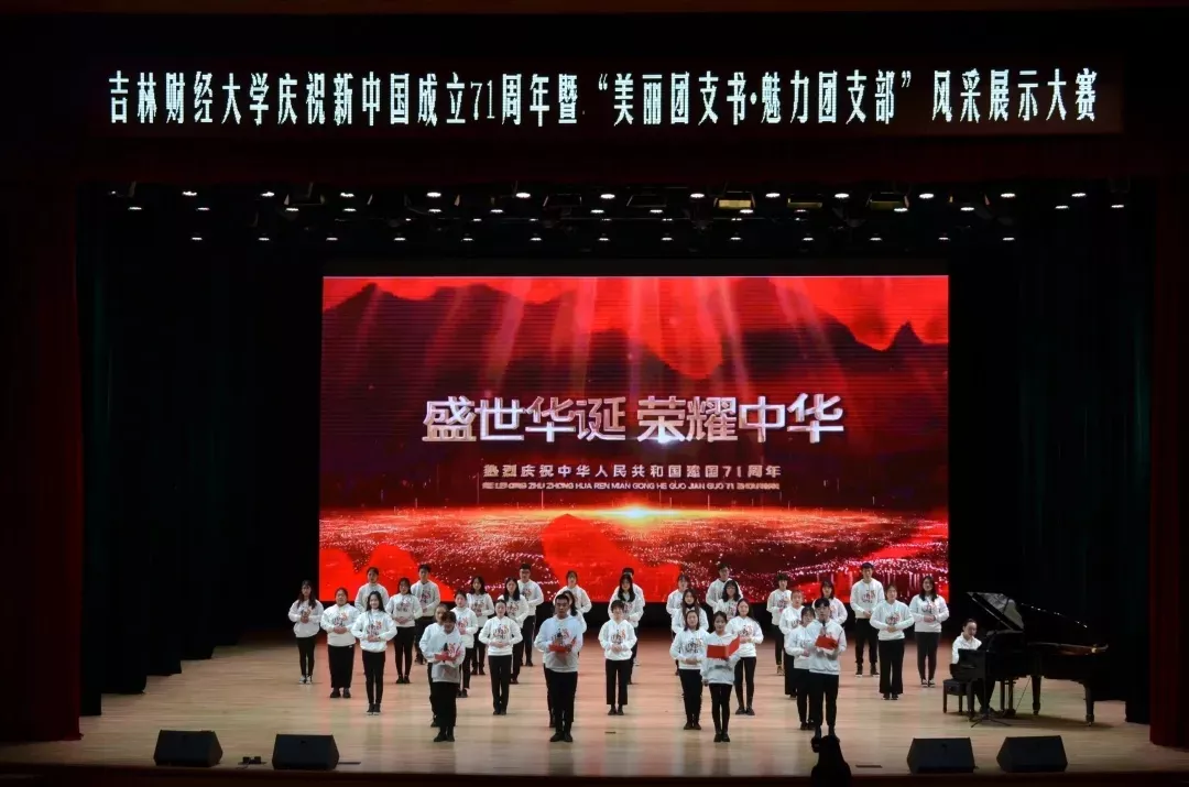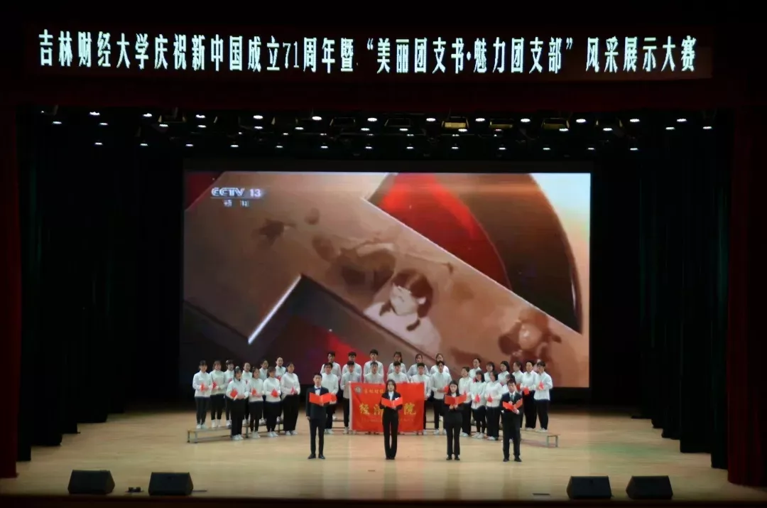 活动的第二部分是“广泛传播新思想——团支部精品主题团日活动展示”。10月28日下午,由共青团kaiyun体育网页登录入口委员会主办,校学生会承办的kaiyun体育网页登录入口庆祝新中国成立71周年暨“美丽团支书•魅力团支部”风采展示大赛在多功能学术中心顺利举办。国际经济贸易学院团委书记遇言、会计学院团委书记王萌、九台农商银行金融学院团委书记刘士明、国际交流学院团委书记杜金亮、税务学院团委书记赵黎光、统计学院团委书记郭妍、亚泰工商管理学院团委副书记许家铭、外国语学院团委老师续成林、应用数学学院团委老师马潘超、公共管理学院团委老师刘亭、法学院团委老师马冬梅、新闻与传播学院团委老师付诗雯担任本次大赛的评委。各学院推荐的团支部分别从铭记历史、砥砺前行、打赢疫情防控阻击战、纪念抗美援朝战争出国作战70周年、暑期返家乡社会实践等方面感悟祖国强盛,感受奋进青春,他们用悠扬婉转的舞蹈、深入人心的歌声表达了对祖国的祝福、对家乡的热爱、对未来的期盼。丰富的团支部活动和激情四射、拼搏进取的良好风貌进一步彰显了吉财青年不忘初心、牢记使命的家国情怀,受到了与会青年的一致好评。