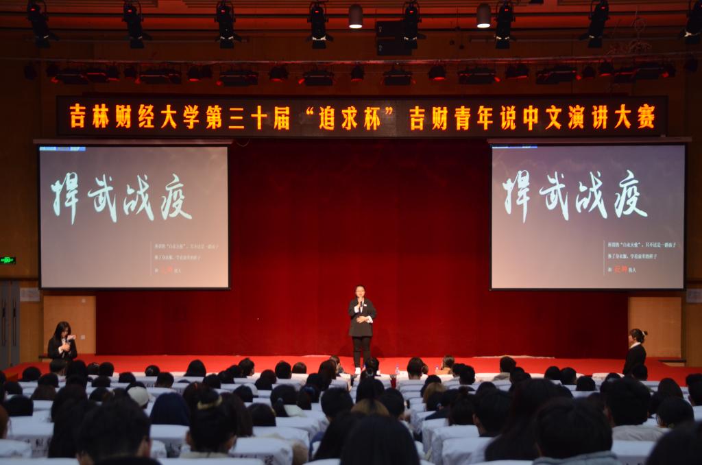 随后,在即兴演讲环节中,选手们根据既定的图片、音频、文字或实物随机抽选题目,结合抗疫英雄的先进事迹和国家社会热点时事,分别从铭记历史、砥砺前行、打赢疫情防控阻击战、纪念抗美援朝战争出国作战70周年等方面感悟祖国强盛,感受奋进青春。在工作人员合分期间,校第二十九届“追求杯”中文演讲大赛一等奖获得者,来自统计学院的时千惠以“感悟青春,传承信念”为主题,与大家分享了有关演讲的宝贵经验。