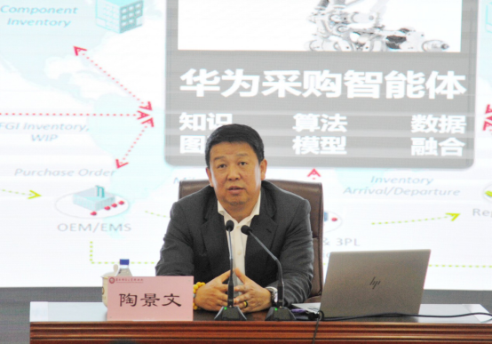 在报告会上,陶景文总裁分享了华为公司在数字化转型过程中的成功实践和经验。他指出,华为面向未来的公司战略是把数字世界带给每个人、每个组织、每个家庭,构建万物互联的智能世界,企业应通过提升用户体验、提高运作效率和模式创新来实现新的增长。他提出数字化转型的三个目标、三个关键、五个转变和三个路径,并通过5G智造、智能仓储、智慧园区等大量实际案例,指出华为通过落实对准用户体验、对准业务作战、打造数字平台等三个要点来全面推进数字化转型战略,实现全连接的智能华为,在追求客户满意的同时有效提升企业运作效率。他强调数字化转型是光速连接下的企业生产力的核聚变,也是一次重大的企业战略方向的变革,需要业务和技术双轮驱动。他特别强调了,要深入落实习近平总书记关于科技创新的重要论述,“关键核心技术必须牢牢掌握在我们自己手中”等重要讲话精神,加快企业、组织和行业的数字化转型,共筑行业企业数字战斗力,不断提升数字经济发展水平。