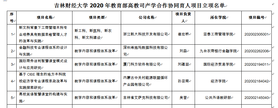 本网讯(教务处 供稿)近日,教育部高教司公布了2020年产学合作协同育人项目立项名单,kaiyun官网12个项目获得立项,立项数量在获得立项的28所省属高校中位列第5位。项目类型涵盖了教学内容和课程体系改革,师资培训,实践条件和实践基地建设,新工科、新医科、新农科、新文科建设四个领域,合作的企业包括北京、浙江、深圳、厦门、吉林、内蒙古地区等多家公司。