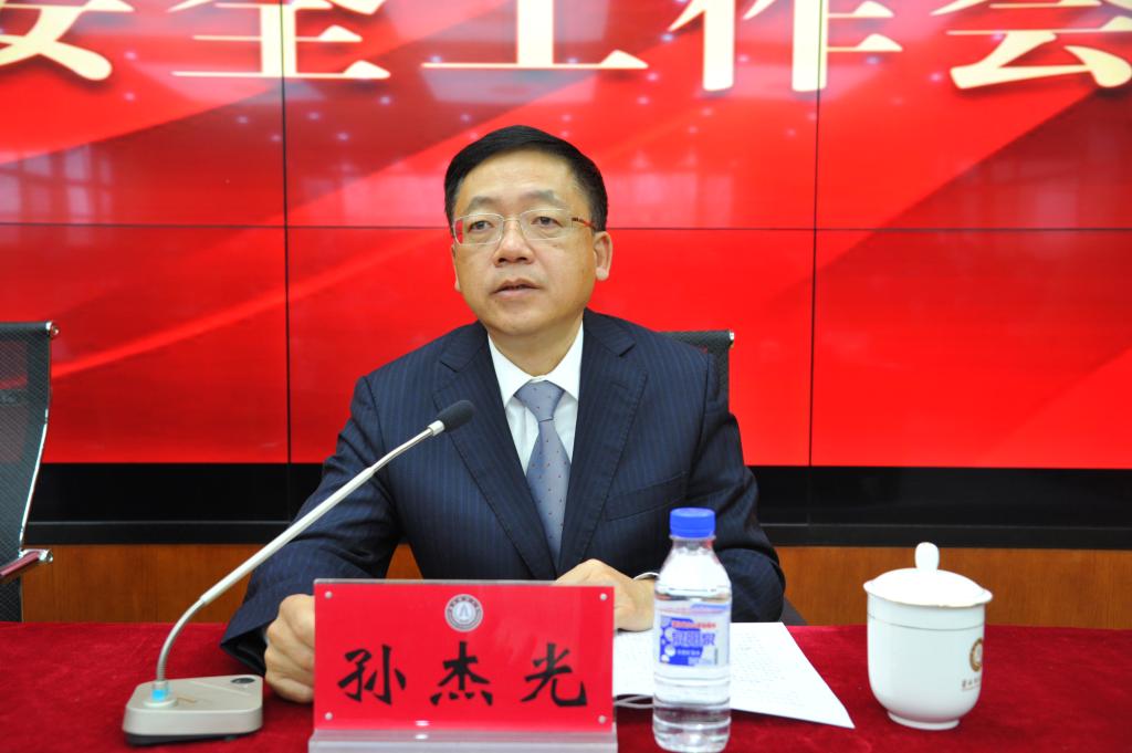 孙杰光校长指出, 2021年是政治大年,大事多喜事多,敏感节点集中,做好全年的稳定安全工作意义尤为重大。各单位要进一步统一思想,提高认识,明确责任,维护师生安全和学校稳定。他强调,一是提高政治站位,强化思想认识。要深刻认识校园安全稳定工作的重要性和特殊性,聚焦风险领域,创新工作思路,确保学校大局持续稳定;二是巩固意识形态阵地,强化防范能力。要认真落实意识形态工作责任制,牢牢掌握意识形态工作领导权主导权;三是完善责任体系,强化制度建设。要以“五化”工作法为指导,加强安全生产工作制度建设,进一步健全和完善安全生产责任体系;四是突出重点领域整治,强化应急能力。要按照学校“安全生产专项整治三年行动 2021 年重点任务”,扎实开展校园安全整治。孙杰光最后指出,平安校园建设意义重大,不仅关系到学校改革发展大局,还关系到社会的和谐稳定。我们要始终秉持 “生命至上,人民至上”的崇高理念,确保校园里每名师生员工的生命财产安全和身体健康,筑牢学校安全防线,不断提升校园安全管理水平和治理能力,切实保障校园安全稳定,努力创建更加和谐、更加安全的校园环境,以优异的成绩庆祝建党100周年和建校75周年。