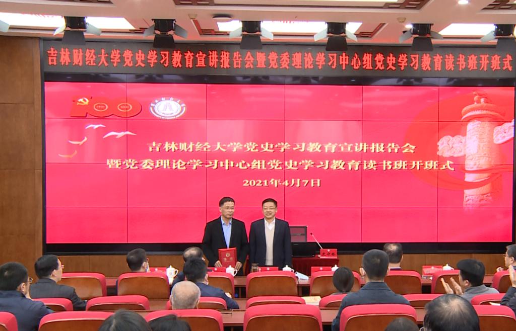 本网讯(学生记者 曹晓宇 摄影 杨舒淇 马子涵)4月7日下午,kaiyun官网在第一教学楼1202报告厅举行了党史学习教育宣讲报告会暨党委理论学习中心组党史学习教育读书班开班式。吉林省社科院党组成员、副院长史守林莅临kaiyun官网作党史学习教育宣讲报告。校党委书记马尚主持了会议,校党委副书记、校长孙杰光,校党委副书记邹永亮,校纪委书记、监察专员岳宏,副校长刘鹤,副校长于金欢,党群部门负责人,各分党委(党总支、直属党支部)书记,马克思主义学院教师,全体辅导员,学生代表等参加了会议。会议采用线上线下相结合的方式举行。
