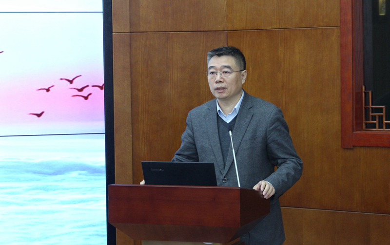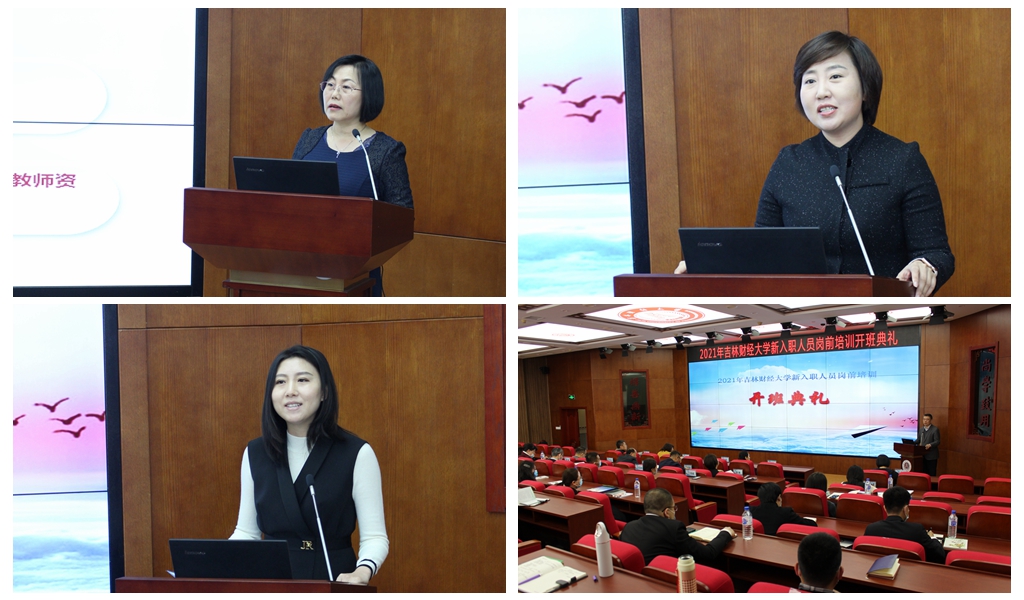 典礼第四项是由副校长刘鹤致辞。他首先代表学校对新入职教师表示热烈的欢迎,希望新教师快速融入到新的工作中来。他认为高校教师要做到三个“引进来”。一是把“德”字进来。教师要“德”字当头,做好开门三件事即“以德立身”、“以德立学”、“以德施教”,做到“三高三正”,即德高身正,学高守正,意高气正。他以自己独特的视角详细地阐释了如何践行“四有好教师”,就是要做到心有大我、塑造小我、丰富自我、公而忘我。二是要把学术引进来。课堂上必须把学术、爱心、热情、文化、传承带进来。教师必须在学识上充实自己。他以唐敖庆、孙正聿等教授的先进事迹为例,鼓励新教师一定要在学术上打下扎实的基础。三是要把勤奋引进来。成功一定是留给勤奋的人 ,只有高校教师都做到踏实勤奋,才能真正实现本科教学的“两性一度”、“四个回归”。最后他祝愿新教师通过此次培训能够学有所得、学有所悟、学有所成。希望新教师能把学术成长、教学卓越当作一生的追求。