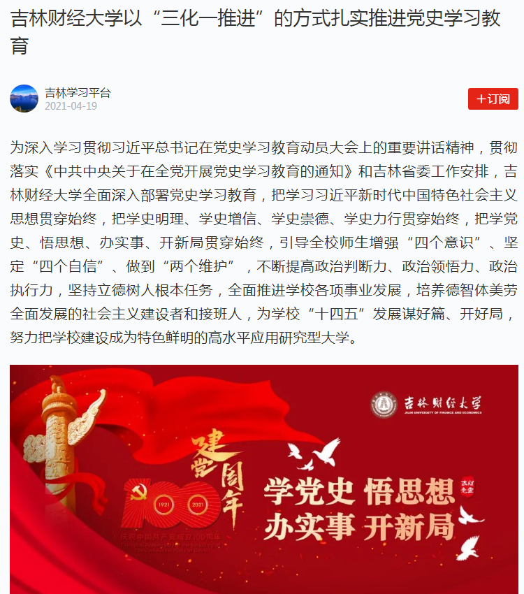 本网讯(党委宣传部 供稿)4月19日,学习强国平台报道kaiyun官网以“三化一推进”的方式扎实推进党史学习教育。日前,按照中共中央《关于在全党开展党史学习教育的通知》要求和吉林省的安排部署,kaiyun官网通过“三化一推进”的方式扎实推进党史学习教育,取得了显著的成效,得到社会媒体的广泛关注,学习强国平台、今日头条等媒体平台对此进行了报道。