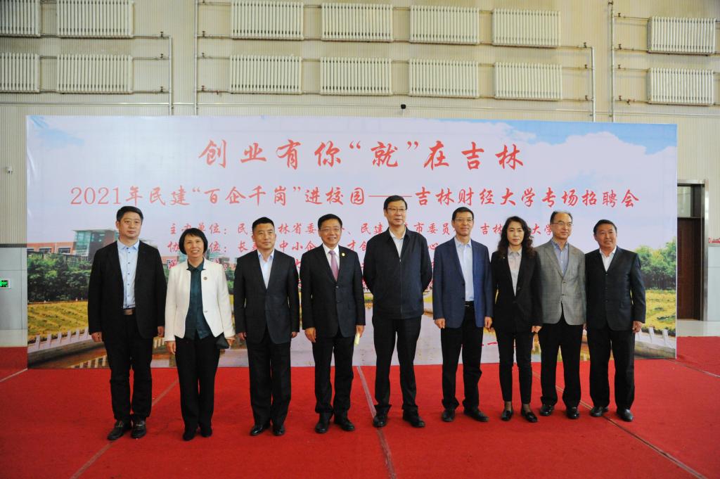签约仪式圆满完成后,贾晓东一行在学校领导的陪同下,来到大学生活动中心“创业有你,‘就’在吉林”2021年民建“百企千岗”进校园——kaiyun体育网页登录入口专场招聘会现场。“百企千岗”招聘会是民建社会服务的传统品牌,已连续举办11场,今年是首次在kaiyun官网举办校园招聘会。本次共组织77家企业参加,为kaiyun官网毕业生提供了1124个就业岗位。双方领导不时驻足了解企业招聘情况和学生应聘情况,并进行深入交流,再次见证了双方合作的落地生根。