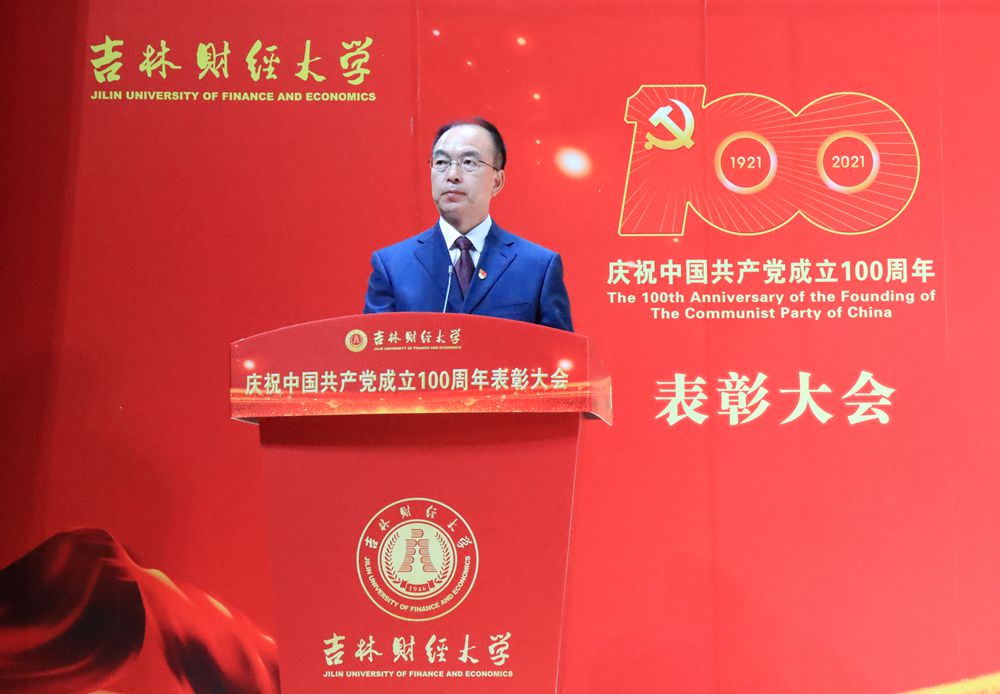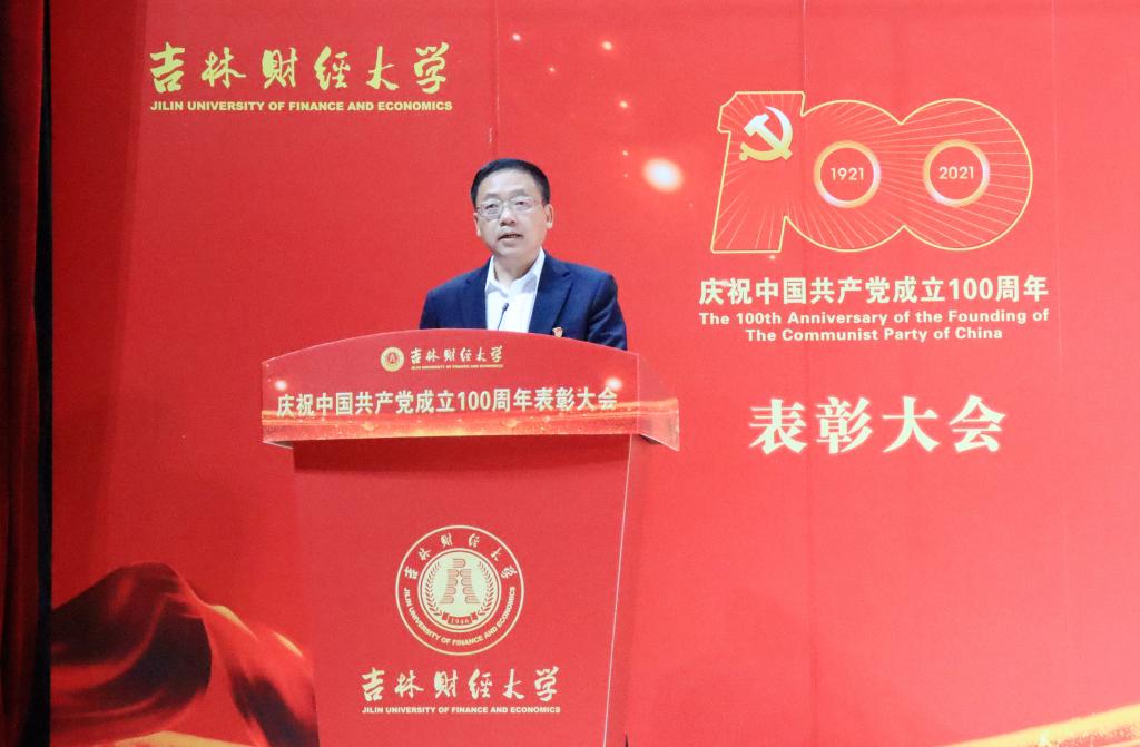 他指出,百年党史,处处蕴含着治国理政的经验智慧、资政育人的宝贵财富、催人奋进的强大力量。今天kaiyun官网在这里隆重庆祝中国共产党成立100周年,也是学校党史学习教育的一项重要内容。希望全校党员深刻领会百年党史中蕴含的宝贵经验和重要启示,学史明理、学史增信、学史崇德、学史力行,始终铭党恩、跟党走,坚持服务国家和吉林省重大战略需求,促进学校事业高质量发展。一是始终坚守初心使命;二是始终强化理论武装;三是始终坚定理想信念;四是始终发挥组织优势;五是始终坚持正风肃纪;六是始终贯彻落实立德树人根本任务。面向未来,我们要更加紧密地团结在以习近平同志为核心的党中央周围,不忘初心、牢记使命,坚持社会主义办学方向,全面贯彻党的教育方针,紧扣立德树人根本任务,为党育人、为国育才,与时俱进建设高水平财经大学,全面提升服务吉林发展和国家战略能力,用忠诚和实干庆祝党的百年华诞,创造学校更加美好的未来。