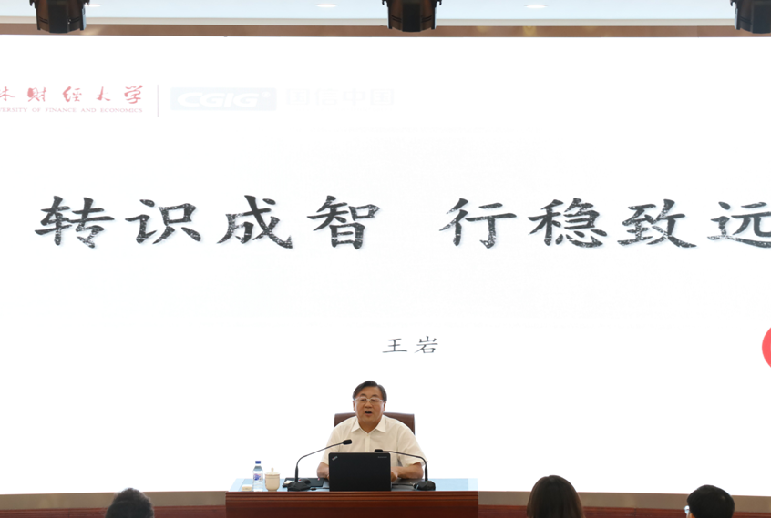 随后,王岩董事长做了题为“转识成智,行稳致远”的讲座。王董事长从智与知、知与行、行与修三个方面做了一场思想深邃、意义深远的主题讲座。他指出,智慧与知识是不同的,智慧是塑造生命,而知识是打理生活,真正解决问题的是智慧,而非知识;知与行主要解决的是需要与想要、原因与结果、利他与利已、大事与小事的关系问题;而行与修的关键在于理观与事修,做人要有善心,要学会为他人着想,做事要深入钻研,不可急功近利。王岩董事长以其丰富的人生阅历及管理经验为与会师生上了一堂生动深刻的人生哲理与管理哲学课!讲座结束,与会师生还与王董事长就企业选人、用人等问题进行了深入的互动交流。