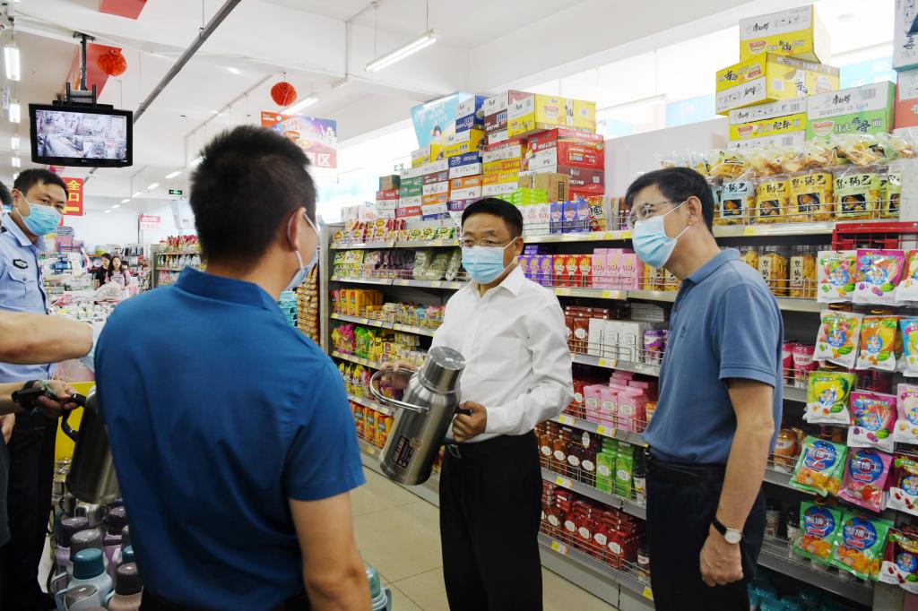 本网讯 新学期伊始,为进一步建设平安和谐校园,结合疫情防控形势,做好新学期学校安全工作,8月31日下午,校党委书记马尚,校党委副书记、校长孙杰光,校党委副书记邹永亮,副校长于金欢带领学校办公室、学生工作处、安全保卫处、后勤保障处、党委宣传部、信息管理中心等相关职能部门人员,深入一线走访校园,调研和检查学校安全工作。在检查过程中,教育厅财务处林立华处长也来到学校进行安全检查,学校领导及相关职能部门负责人陪同。