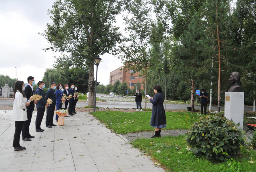本网讯(学生记者 刘欣然 摄影 侯冠宇 崔悦)9月10日上午,在副校长刘鹤的带领下,党委教师工作部、研究生学院、教务处、教发中心负责人和青年教师代表到吕金华老师塑像前献花。