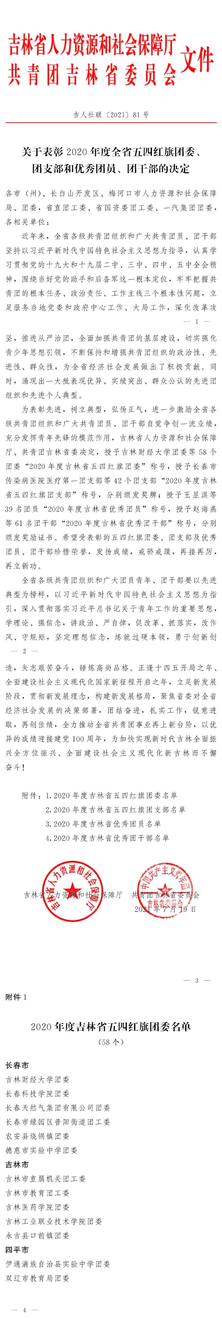 本网讯(校团委 供稿)近日,吉林省人力资源和社会保障厅、共青团吉林省委员会印发《关于表彰2020年度全省五四红旗团委、团支部和优秀团员、团干部的决定》(吉人社联[2021]81号),kaiyun官网团委喜获2020年度“吉林省五四红旗团委”荣誉称号。“吉林省五四红旗团委”是团省委授予吉林省基层团组织的最高荣誉,在新形势下,创建“五四红旗团委”是全面推进共青团基层组织建设,活跃基层团组织工作的重要手段和载体。