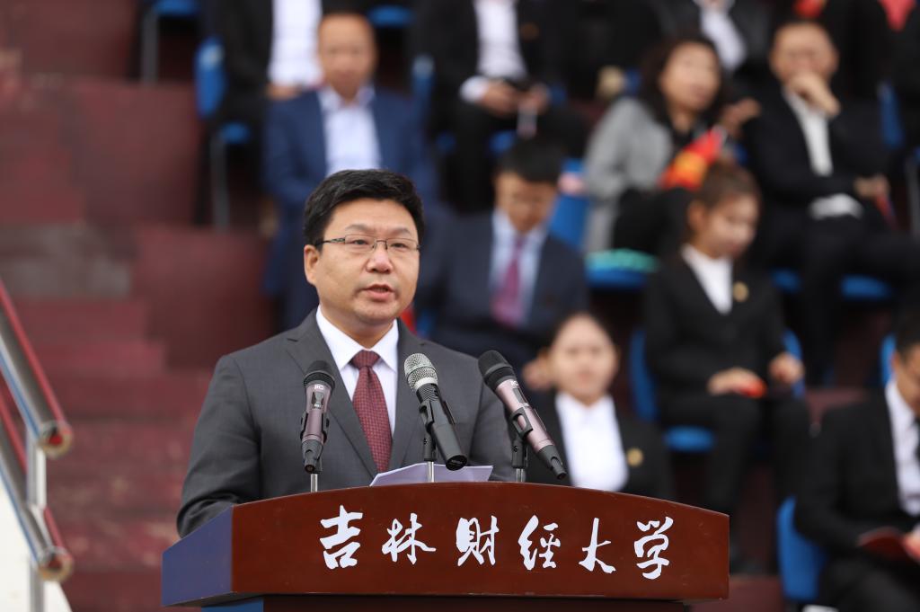 法学院院长仇晓光教授代表全体教师发言。他表示,法治思维和法治方式对于国家和个人至关重要。法治思维是认识、分析和解决问题的基本思维方式。希望同学们能够恪守规则,尊重校纪校规,讲规则守规则用规则,做一名合格的吉财人。同时,建立与大学相适应的学习方式和习惯,做到不满足课堂之内,开拓于课堂之外,勇于担当社会发展重任,用法治思维谱写新的人生华章。