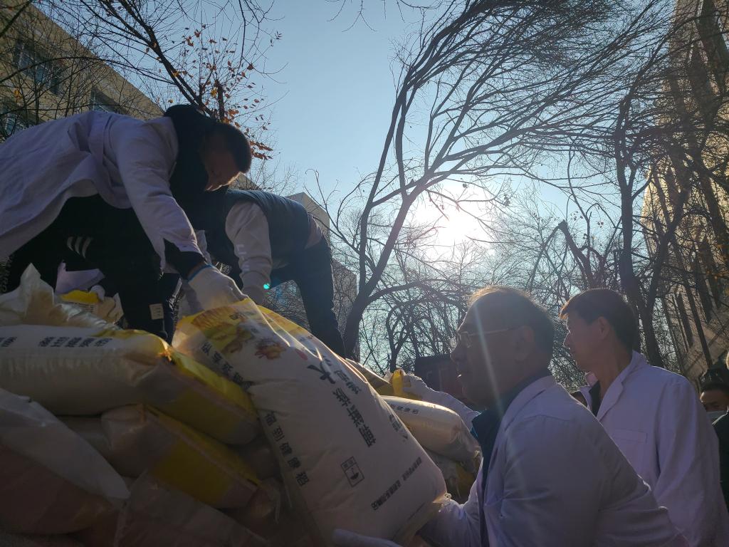11月2日早8:30分,后勤党总支全体党员在食堂后门集合,穿上校医院提供的白大褂蓄势待发, 50+、40+、30+的党员不分你我冲在前面,你递我接,分工明确、密切配合,装卸现场热火朝天。在这过程中,很多党员满头大汗、浑身是灰,仍不知疲倦的坚持到最后,尽自己的一份辛苦,为振兴乡村献一份力量。