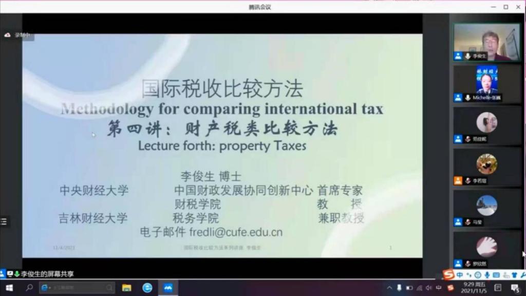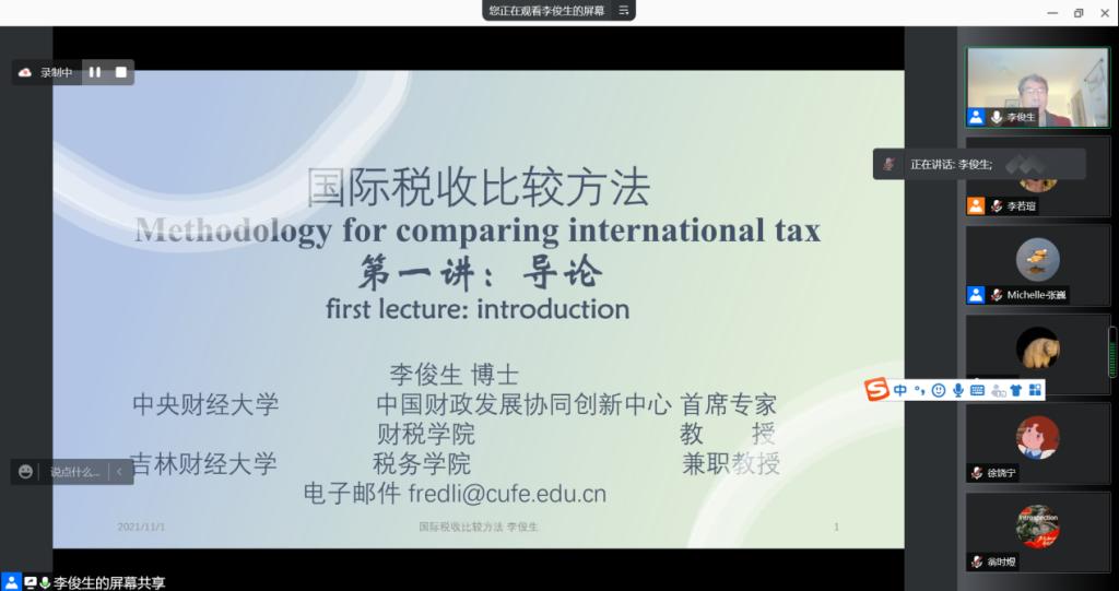 本网讯(税务学院 供稿)11月2日至5日,中央财经大学、kaiyun体育网页登录入口税务学院特聘教授李俊生通过腾讯会议为税务院师生开展了为期四天的线上授课,此次授课主题为“国际税收理论与前沿实践”。税务学院院长张巍、副院长马莹、中央财经大学财政税务学院副院长何杨、中国财政发展协同创新中心副主任姚东旻、中央财经大学部分博士生以及我院2020级、2021级研究生100余人参加了此次云间系列课程。