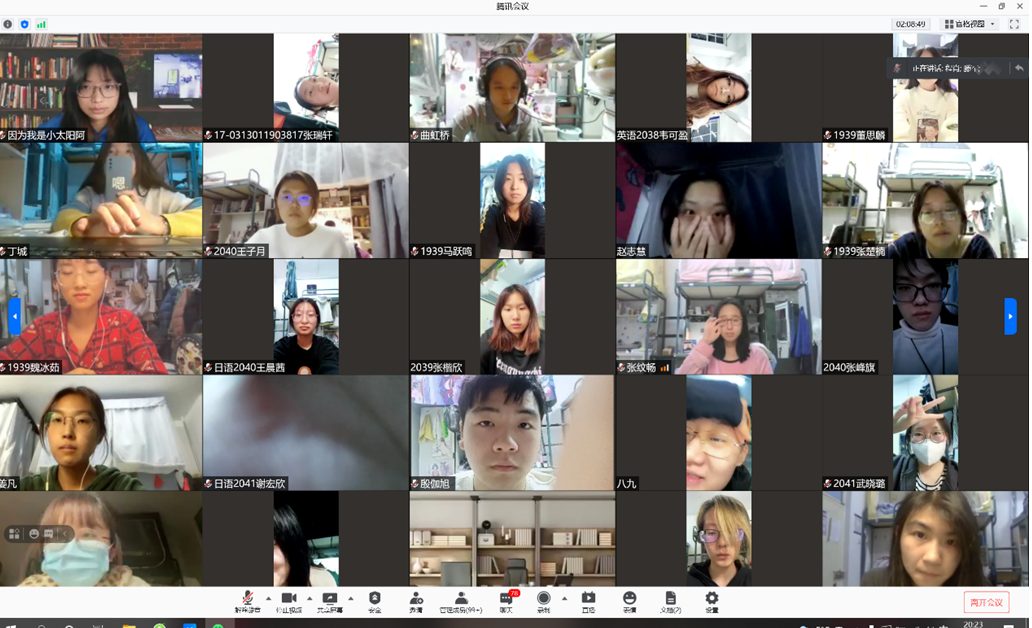 首讲由外语学院院长王艳华教授致辞并总结,日语系主任丁文博主持互动环节,日语专业21级研究生全体在线辅助工作。讲座内容精彩,受到校内外众多老师和同学们的共同关注,讲座期间的在线听讲人数一直呈现高上线率和持续在线的高保持率。