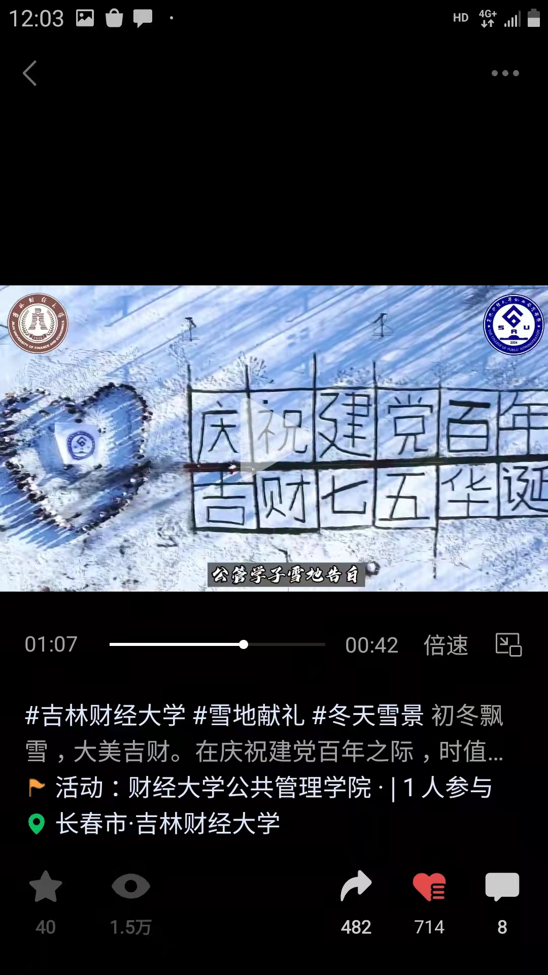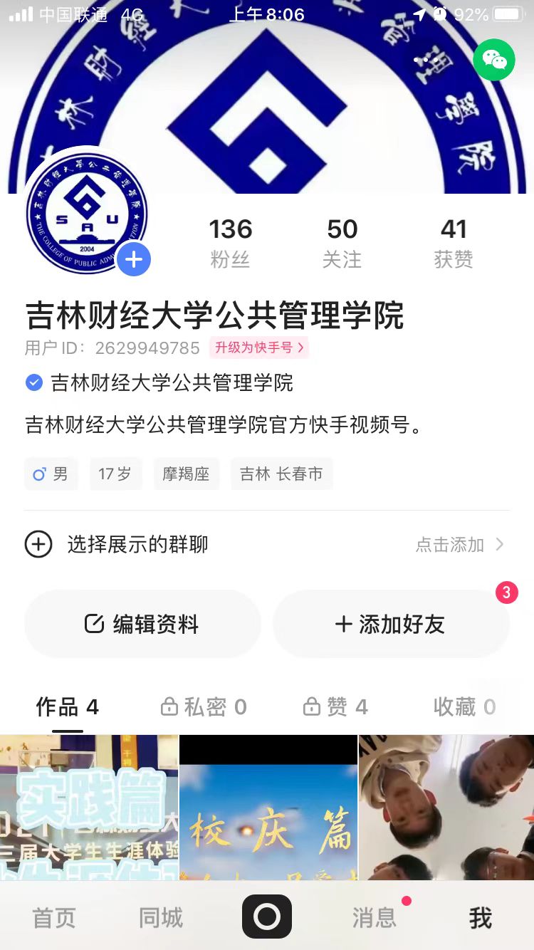 下半年,公共管理学院陆续开通了微信视频号、抖音、快手等网络平台,以喜闻悦见的形式,形成了“一次采集、多种生成、多元传播”的立体发布模式,有效实现网络思政的“思想同心”“目标同向”“育人同力”“质量同优”理念,达到了传播效果的最大化和最优化。首期微信视频号“吉财七五华诞 公管雪地献礼”一经发布,2小时内点赞量突破700人,转发量将近500次,更有校友表示“这是对母校建校75周年的诚挚祝福”。