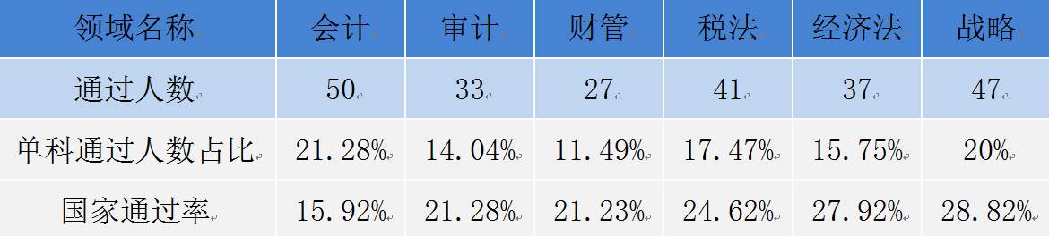 会计学院累计通过全国注册会计师单科考试共235门。其中,会计与公司战略与风险管理单科通过人数最高,会计科目累计合格人数为50人,单科累计通过率达到8.33%,公司战略与风险管理为47人,单科累计通过率7.83%,目前,会计学院研三已有7名学生全部通过6门全国注册会计师考试。