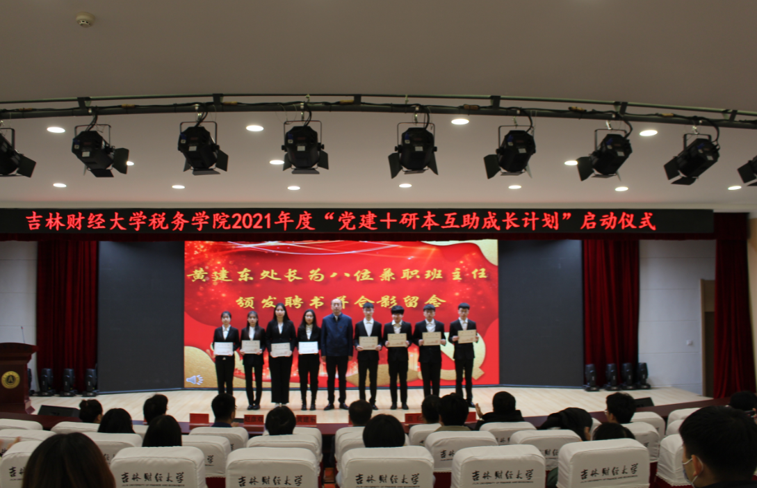 本网讯(税务学院 供稿)2021年12月3日,税务学院在第一教学楼1101报告厅举办了2021年度“党建+研本互助成长计划”项目启动仪式。党委学生工作部部长黄建东、学院党委书记赵彦双、副书记赵黎光、全体辅导员参加了启动仪式。