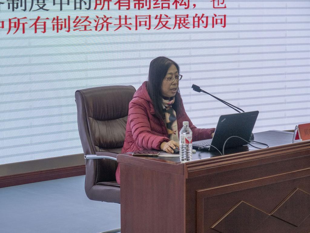 最后,刘艳龙副院长对本次活动进行总结。他指出,周晓梅老师关于十九届六中全会党的决议中社会主义经济制度的相关内容做了一场精彩报告。周老师从生产关系要适应生产力发展规律、解决社会主义新时代的主要矛盾和促进社会主义经济健康发展三个方面,讲解了党毫不动摇坚持、巩固、发展公有制经济,毫不动摇鼓励、支持、引导非公有制经济的相关内容。周老师的报告,从引用马克思主义经典作家的相关论述讲起,阐述中国共产党在理论上的相关创新,详细为我们梳理了社会主义基本经济制度在理论上的发展演绎,紧密联系我国社会主义经济建设的实践,内容丰富,讲解详实,为我们进一步学习十九届六中全会精神起到促进作用。(审核人 张洪梅)