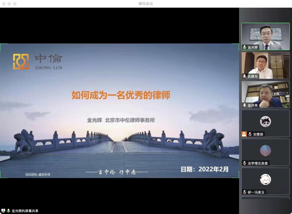 2月9日,北京市中伦律师事务所非权益合伙人金光辉以《如何成为一名优秀的律师》为题讲座。从为什么选择做律师,一名律师的重要特质,如何成为一名优秀的律师三个方面,为同学们全面而细致地阐释了判断自身是否应当选择律师行业的理由,是否能够胜任律师行业的个人特质以及培养从业必备能力的方法。通过金律师三个部分的讲解,使同学们能够明辨律师行业与其他法律行业的差异,以及自身与律师行业的契合性。