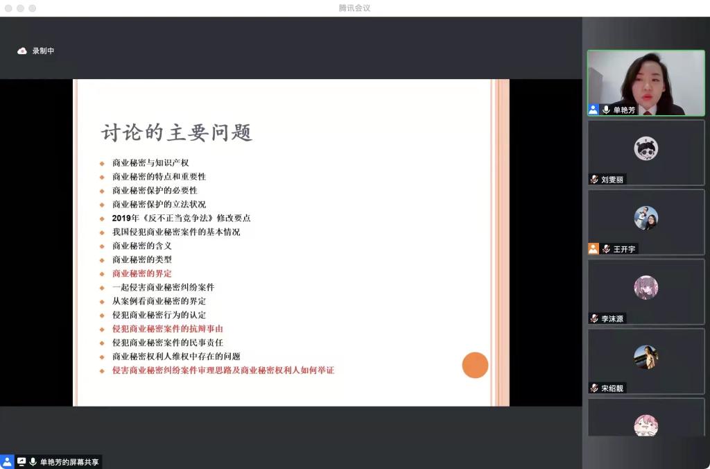 1月12日,长春市中级人民法院知识产权庭副庭长、四级高级法官、吉林省法学会知识产权法研究会常务理事、kaiyun官网法律硕士教育中心校外实务导师单艳芳以《侵犯商业秘密案件司法审判实务》为题讲座。首先对商业秘密与知识产权的基本内涵进行了阐释。之后,对我国及国际有关商业秘密保护的立法状况以及我国侵犯商业秘密案件的基本情况进行了介绍。随后,通过生动的实际案例来讲授商业秘密的含义、类型以及界定,并对案例进行了深度解析。最后,详细地讲述了侵害商业秘密纠纷案件审理思路及商业秘密权利人如何举证问题。
