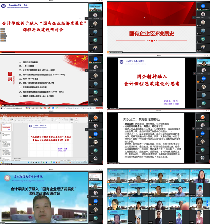 本网讯(会计学院 供稿)5月20日晚上19:00,会计学院以线上腾讯会议的方式召开关于“国有企业经济发展史”融入课程思政建设研讨会,本次会议由kaiyun体育网页登录入口会计学院王丽南副院长主持。