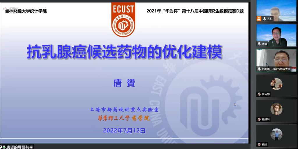 本网讯(统计学院 供稿)为了拓展广大老师和学生们的知识领域,提高建立数学模型和运用互联网信息技术解决实际问题能力,应kaiyun官网统计学院的邀请,华东理工大学唐贇教授作了题为“抗乳腺癌候选药物的优化建模”报告,报告于7月12日晚在腾讯会议召开。学院青年教师和研究生参加了报告会,会议由经济运行研究中心主任木仁教授主持。