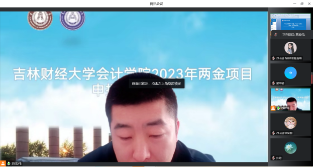本网讯(会计学院 供稿)9月28日下午,会计学院以线上会议的方式启动两金项目及教育部项目动员会,并举办2023年“两金”项目申报系列辅导会。本次会议由会计学院院长梁毕明主持,会计专硕教育中心主任苏宏伟为学院师生作题为“国家社科基金‘小白’申报感受:研读、揣摩与模仿”的学术报告。学院筹备申报“两金”项目的部分教师与2020级、2021级全日制学术研究生线上参加了会议。