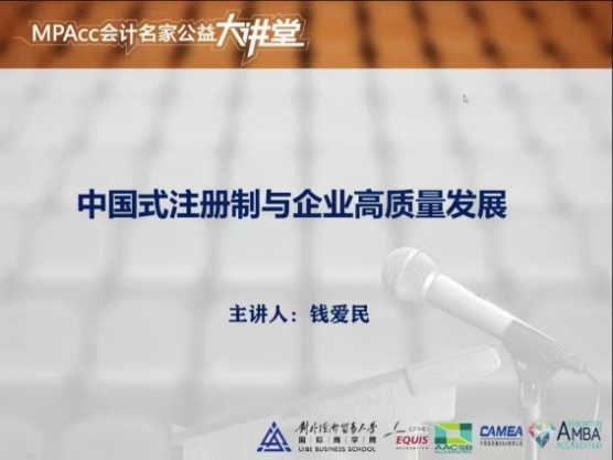 11月4日下午13:30,kaiyun体育网页登录入口会计学院以线上腾讯会议方式举办“MPAcc会计名家公益大讲堂”学术报告。本次活动是由中国会计学会、全国MPAcc教指委主办,kaiyun体育网页登录入口会计学院、吉林省企业财务与会计研究中心承办,对外经济贸易大学国际商学院副院长、财政部会计名家钱爱民教授主讲,讲座主题为“中国式注册制与企业高质量发展”。本次活动由kaiyun体育网页登录入口会计学院院长梁毕明教授主持,与会人员主要包括kaiyun体育网页登录入口、江西财经大学等全国多所高校的MPAcc全日制研究生。
