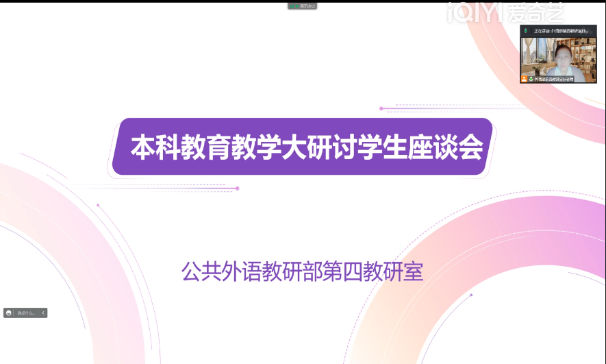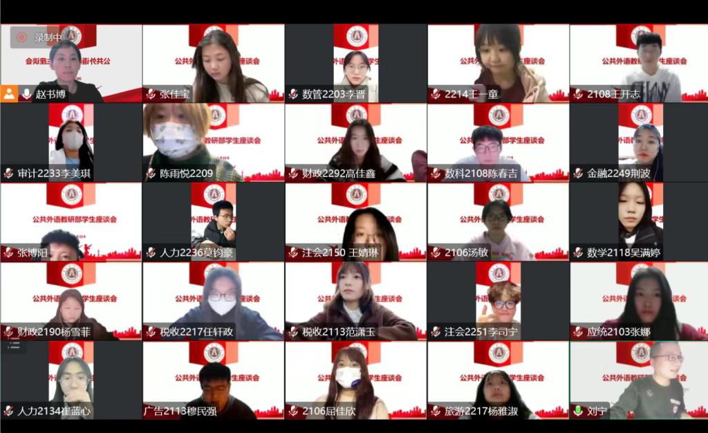 本网讯(公共外语教研部 供稿)11月23日,公共外语教研部以四个教研室为单位召开“科研能力提升”学生座谈会(线上),来自全校2021级、2022级的86名同学参加了会议。此次分散座谈会由第一教研室主任赵书博、副主任刘宁,第二教研室主任吴晋,第三教研室主任呼琳,第四教研室主任孙艳分别主持。