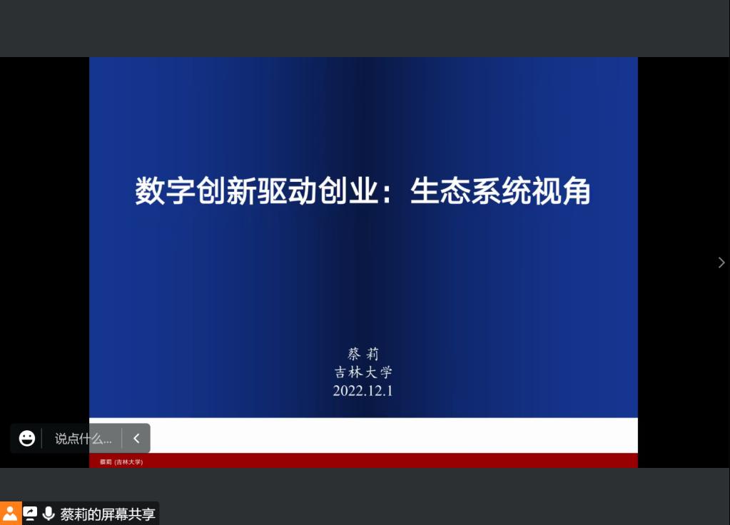 报告人简介:蔡莉,吉林大学商学与管理学院教授、博士生导师,吉林大学创新创业研究院院长。长期从事创业与创新管理研究工作,取得一系列研究成果,在《Entrepreneurship Theory and Practice》《Journal of Business Research》《管理世界》《南开管理评论》《中国工业经济》《管理科学学报》等国内外学术期刊发表论文百余篇,出版专著7部,译著1部。获得省部级科技进步奖、省部级人文社会科学研究优秀成果奖10余项。主持国家自然科学基金重大项目、重点国际(地区)合作研究项目、重点项目、面上项目及国家社会科学基金项目等10余项。