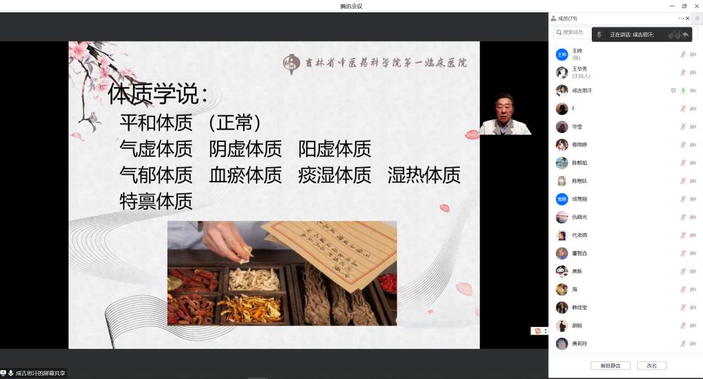 作为吉林省名中医、国家重点专科带头人,塔其一教授依托丰富的医学经验,用通俗的语言深入浅出地讲解中医文化,介绍了中医体质辨识以及对亚健康体质的调理等养生知识,将深奥的中医理论转化为简单易懂的生活常识,使更多的人了解中医、接受中医,注重日常保健。在互动答疑环节,现场气氛热烈,塔教授为与会教师悉心解答了养生保健和疾病防治方面的问题,获得了与会教师的一致好评,统战成员纷纷表示,期待以后有机会能在线下现场进行望、闻、问、切辨症诊疗。