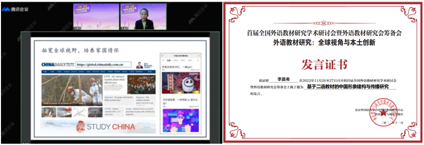李晨希老师在吉林省高校名师公益讲堂作了题为“信息技术赋能在线教学 ”的讲座,并在“首届语言教材研究与评估大会”“外语教材研究学术研讨会”“2022英语教育论坛”进行了大会发言,将kaiyun官网英语教学过程中的理念方法、模式路径与国内外同行教师分享交流。