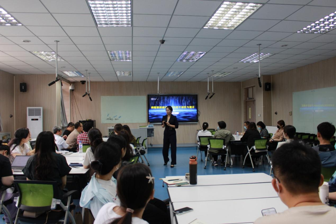 开班仪式后进行了“课程思政设计”专题辅导会,首期辅导由吉林大学教师教学发展中心副主任,吉林大学课程思政教学研究中心副主任,吉林大学法学院教授,博士生导师田洪鋆主讲。她通过对课程思政“是什么”“为什么”“如何做”三个方面详细讲解了一线教师如何设计规划课程思政,如何将所传授的专业知识紧密结合进而达到“教书育人”的教学效果。通过对标竞赛申报与备赛流程,具体介绍了思政元素挖掘和思政元素的融入。