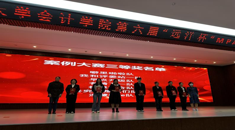 本网讯(会计学院 供稿)2023年10月18日,会计学院在新经济(数字经济)创新创业实训中心报告厅举行第六届“远洋杯”MPAcc案例大赛总决赛暨颁奖闭幕式。学校研究生学院院长卢相君、科研处副处长王丹,会计学院党委书记李金富、院长梁毕明、副院长王丽南、团委副书记罗旭,以及2023级全体全日制研究生参加大赛及闭幕式。比赛由会计学院邵方婧老师主持。