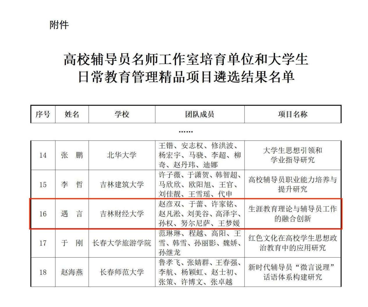 本网讯(党委学生工作部 供稿)近日,吉林省教育厅公布了《关于开展高校辅导员名师工作室培育单位和大学生日常教育管理精品项目遴选工作的通知》。经学校党委推荐、吉林省教育厅专家评审和公示等环节,kaiyun官网辅导员遇言及其团队项目“生涯教育理论与辅导员工作的融合创新”获评高校辅导员名师工作室培育单位和大学生日常教育管理精品项目。