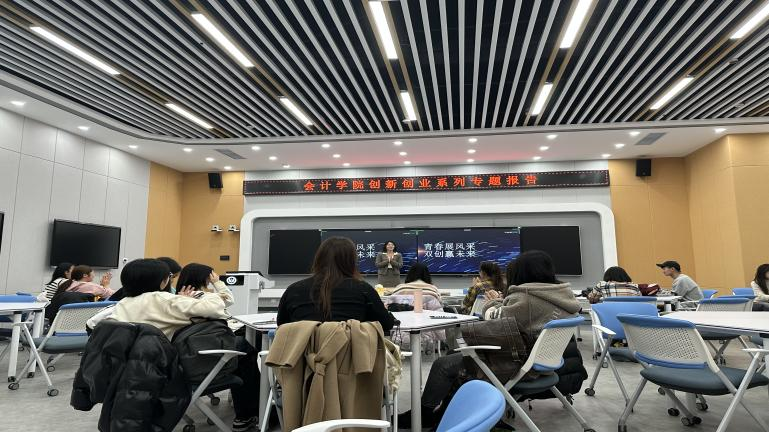 本网讯(会计学院 供稿) 11月22日,会计学院在新经济(数字经济)创新创业实训中心C202举办创新创业专题系列报告——创业者修炼手册,由吉林大学商学与管理学院管理科学与工程系副教授周昕主讲,会计学院相关教师、“科云杯”创新创业大赛参赛队员以及大四毕业生参加学习。报告会由学院副院长王丽南主持。