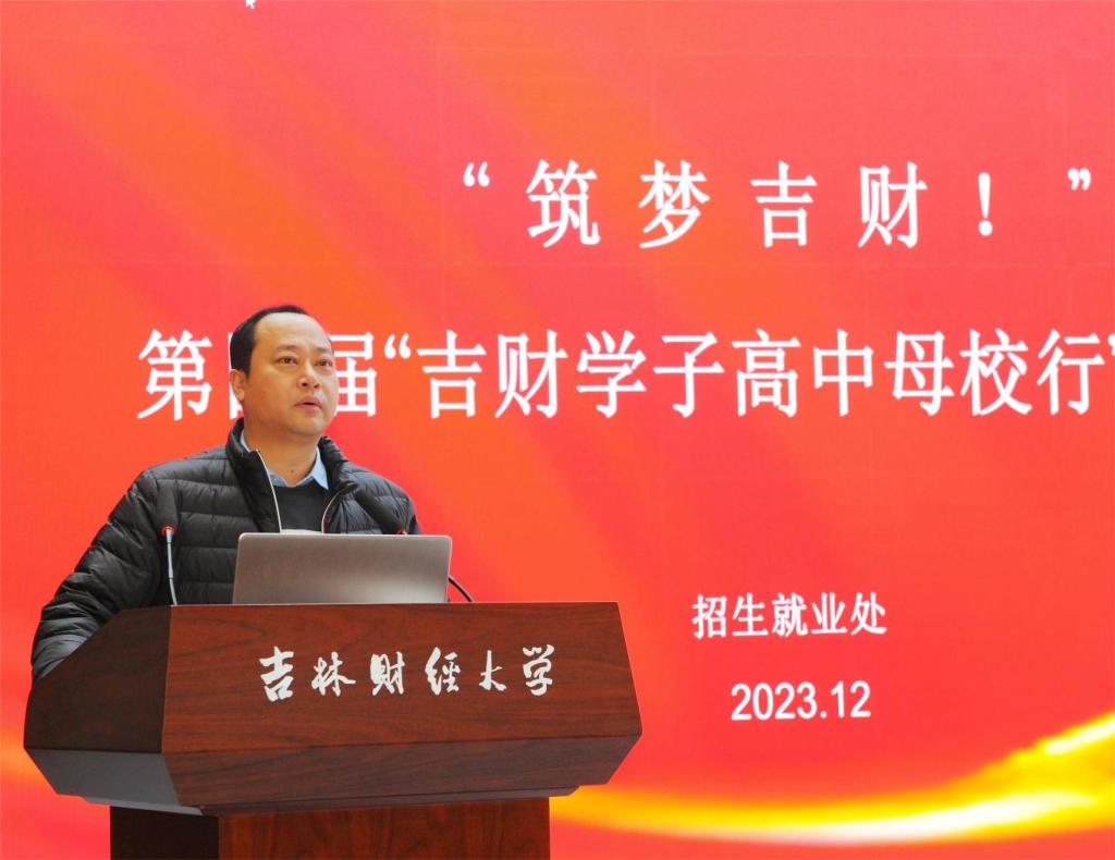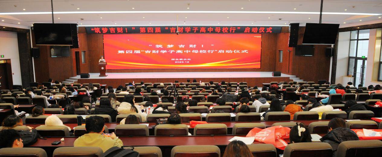 本网讯(招生就业处 供稿)12月27日,“筑梦吉财!”第四届“吉财学子高中母校行招生宣传主题实践活动”启动仪式在学校双创中心举行,招生就业处处长蒋武鹏、学生工作处副处长徐瑞妍、招生就业处招生科副科长张馨元,以及302名母校行活动的学生志愿者参加启动仪式。