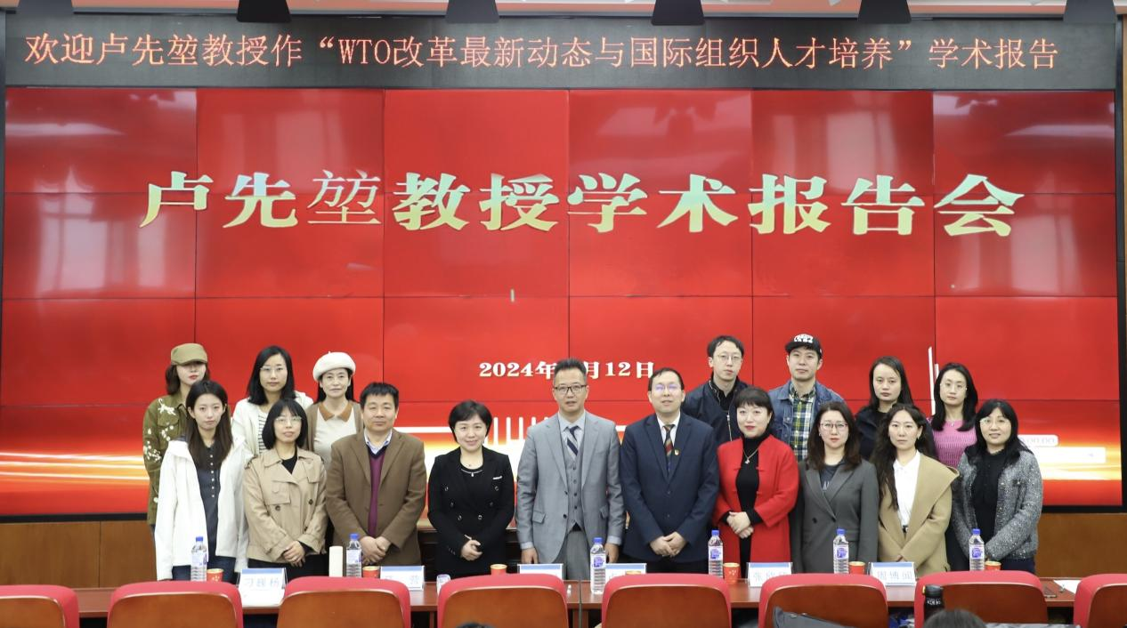 本网讯(国际经济贸易学院 供稿)为紧跟国际贸易学科发展动态,聚焦WTO最新谈判进展,培养国际组织与全球治理人才,4月12日上午,国际经济贸易学院邀请中国常驻世贸组织(WTO)前参赞、日内瓦智库“多边主义之友小组”(FMG)创始人、日内瓦箂科中心执行主任卢先堃教授作《WTO改革最新动态与国际组织人才培养》专题学术报告。国际经济贸易学院师生参加报告会。会议由国际经济贸易学院副院长杨立国主持。