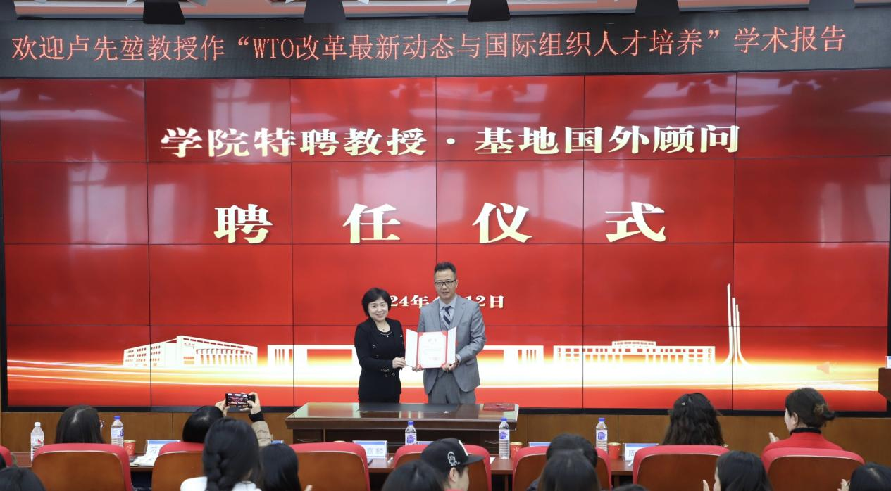 报告会后,国际经济贸易学院院长关嘉麟为卢先堃颁发了kaiyun体育网页登录入口国际经济贸易学院特聘教授、吉林省社会科学重点领域(吉林省对外经贸发展)研究基地国外顾问聘书。