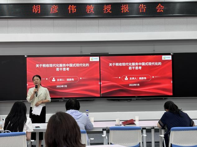 本次报告是税务学院提升学科建设水平的系列报告之一,也是学院落实学校服务税收现代化行动计划的具体举措。税务学院教师及研究生参加了报告会。报告会由税务学院院长张巍主持。(审核人 张巍)