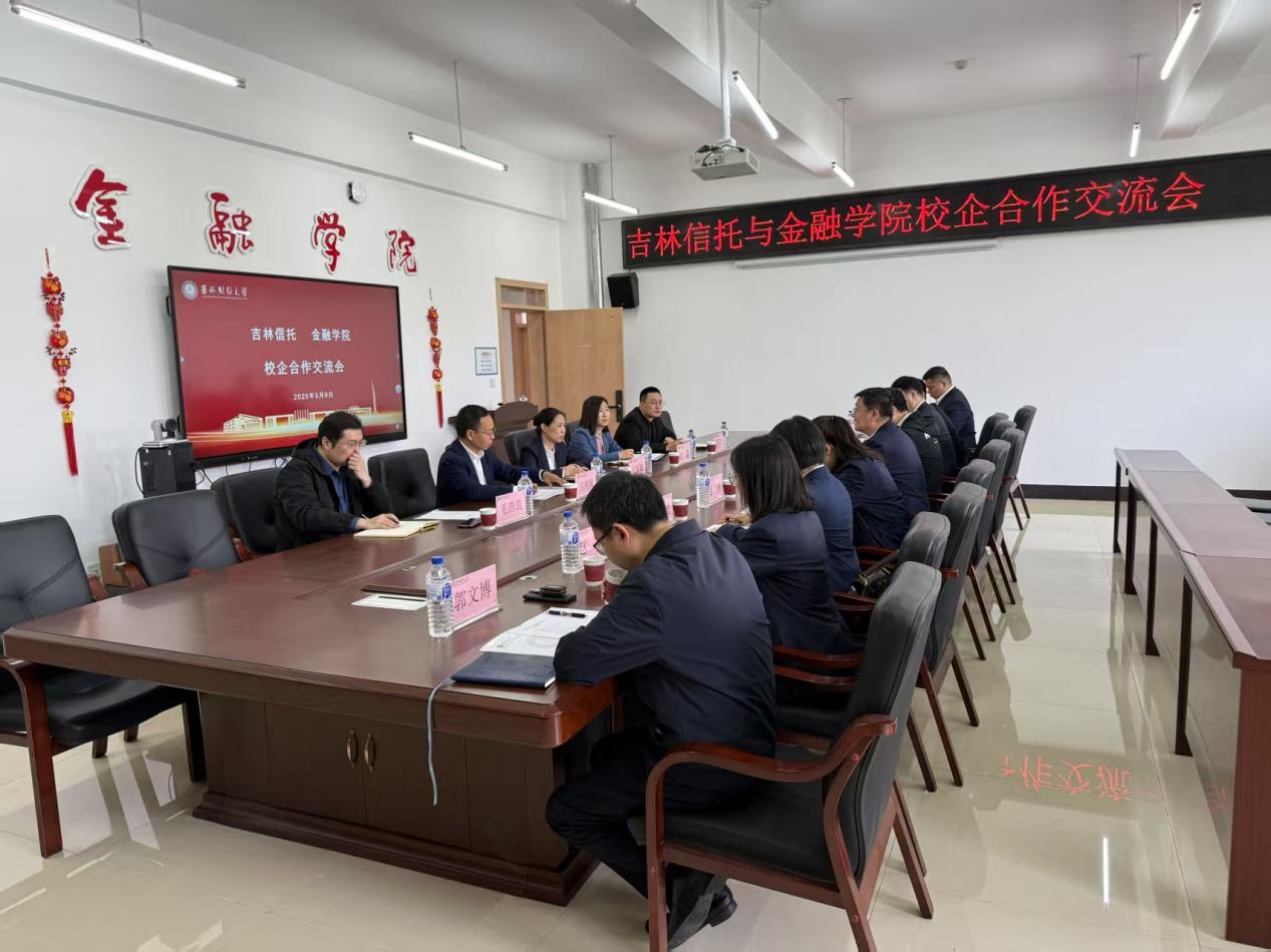 金融学院班子及教师代表,吉林信托监事会办公室主任赵珅、人力资源部总经理邱耀、财富管理中心运营团队主管吴迪、长春信托业务一部总经理刘继新、长春信托业务一部信托经理赵薇、南京信托业务部总经理刘向植、南京信托业务部副总经理郭文博、南京信托业务部信托经理刘喜发参加了会议。会议由金融学院党委书记王利国主持。(审核人 王丽颖)