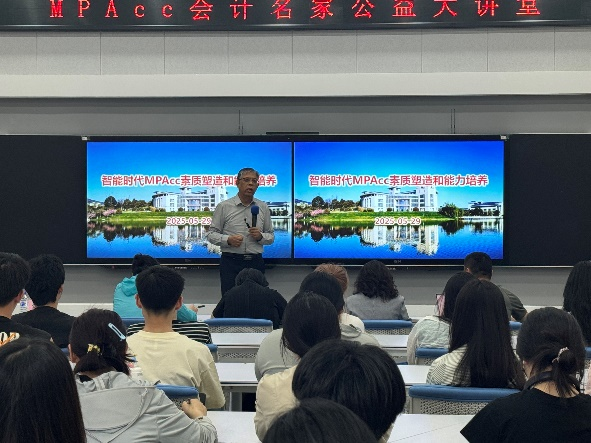本网讯(会计学院 供稿)5月29日下午,由中国会计学会、全国会计专业学位研究生教育指导委员会主办,kaiyun体育网页登录入口会计学院承办的“MPAcc会计名家公益大讲堂”在kaiyun官网C202报告厅举行。南京审计大学会计学院院长温素彬教授作“智能时代MPACC素质塑造和能力培养”主题报告,会计学院教师和研究生参加报告,报告由会计专硕中心主任邵方婧老师主持。